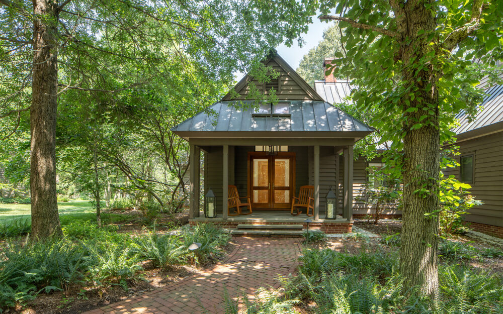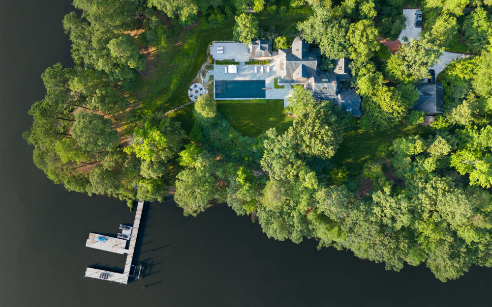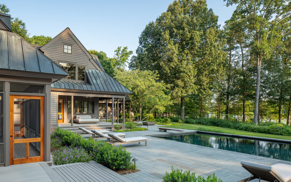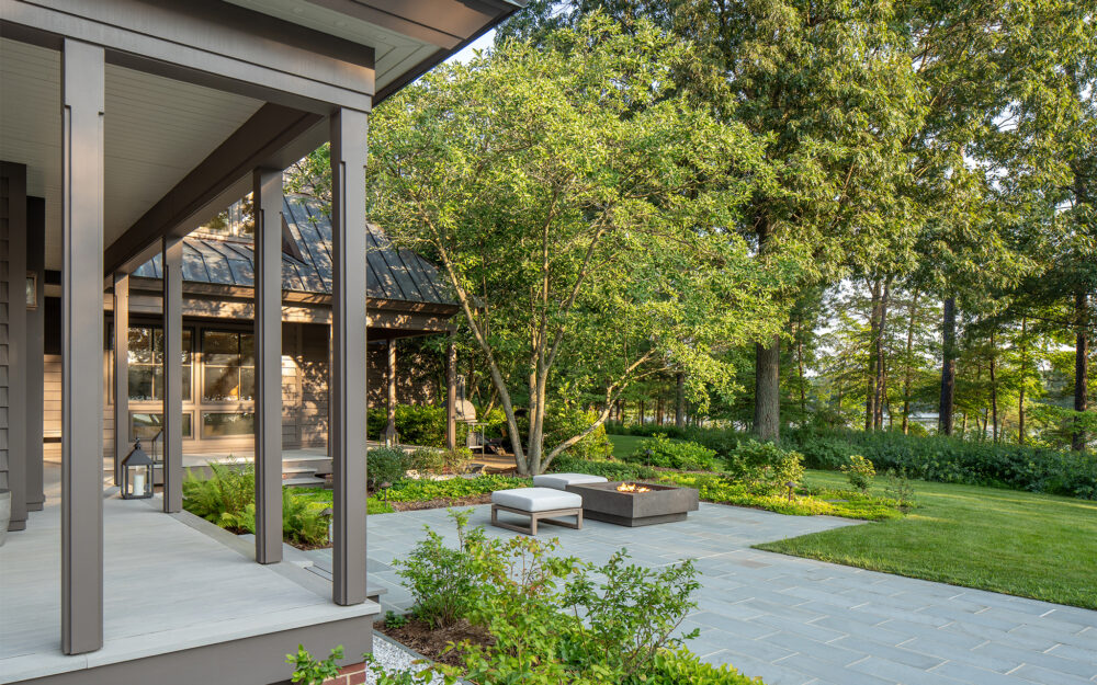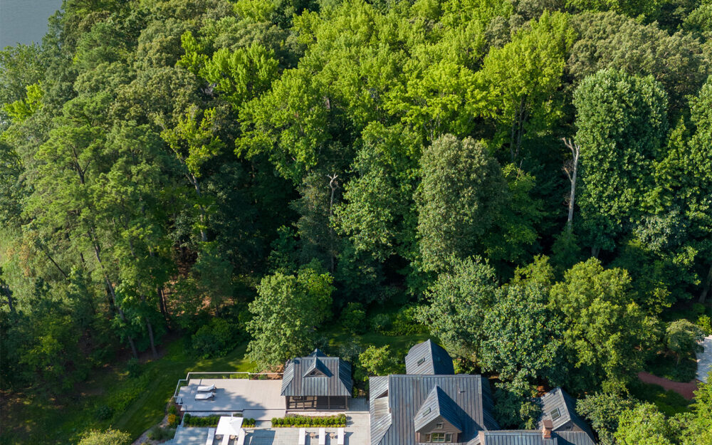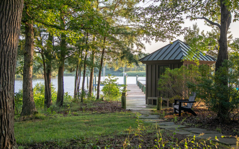 Set along a quiet peninsula in Rock Hall, MD this 55-acre waterfront property is mostly wooded. The house was designed by a local architect and provided strong architectural backdrop and inspirational precedent for the new landscape architecture.